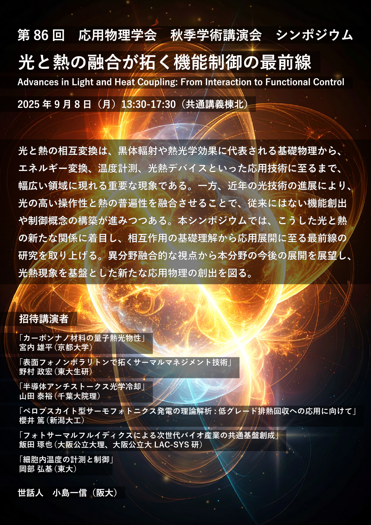 | 13:30-17:30 | N103 | T25 | 光と熱の融合が拓く機能制御の最前線 | 〇 | ||