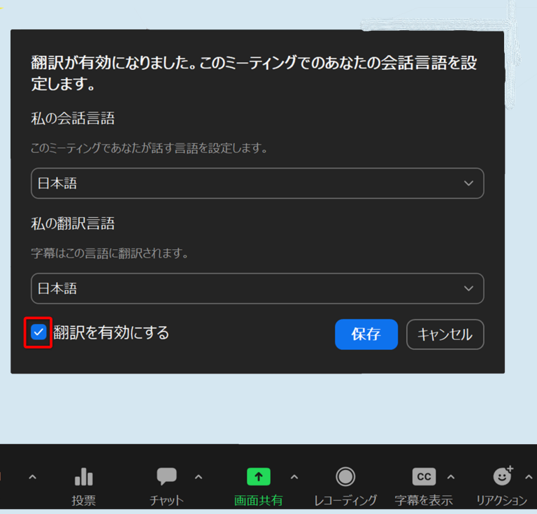 ミーティング中に、別の言語に変更したり、原文と翻訳を同時に表示するなどの設定変更ができます。操作方法は以下をご参照ください。