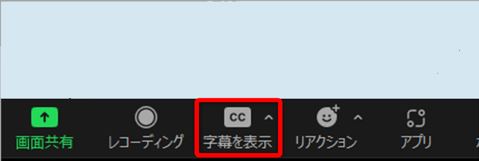 1. Zoomツールバーの「字幕を表示」ボタンをクリックします |